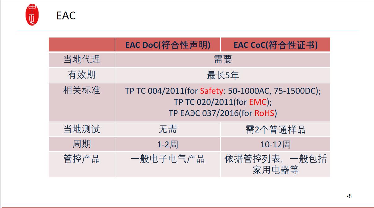 电子产品EAC认证是进入海关联盟成员国包括俄罗斯、白俄罗斯、哈萨克斯坦、吉尔吉斯斯坦和亚美尼亚的强制认证。从2020年3月1日起,除取得EAC COC/DOC证书外,部分产品还需要取得EAC RoHS DOC才能进入海关联盟成员国当地市场。